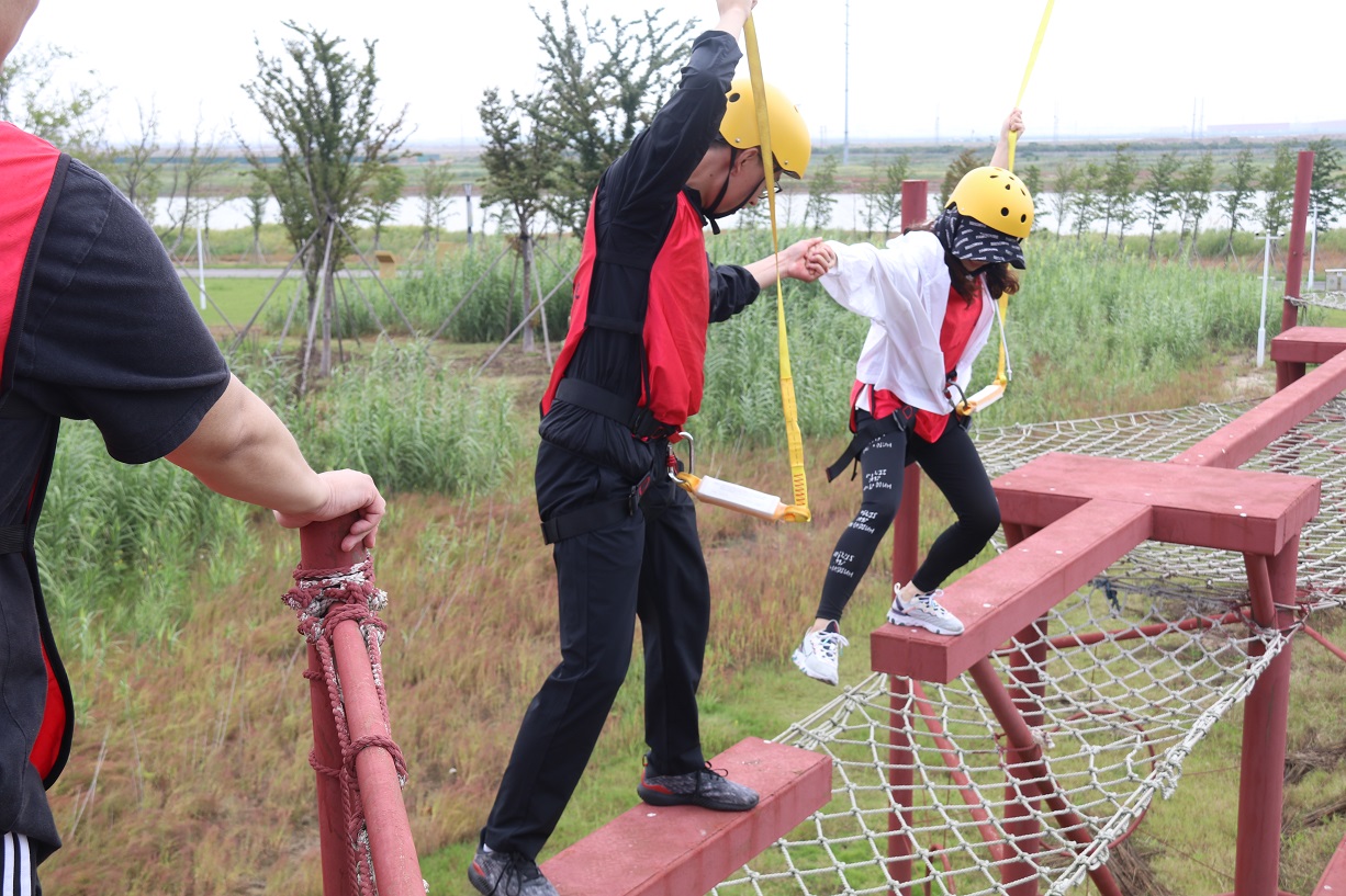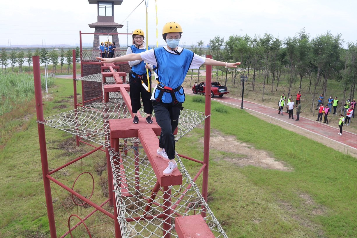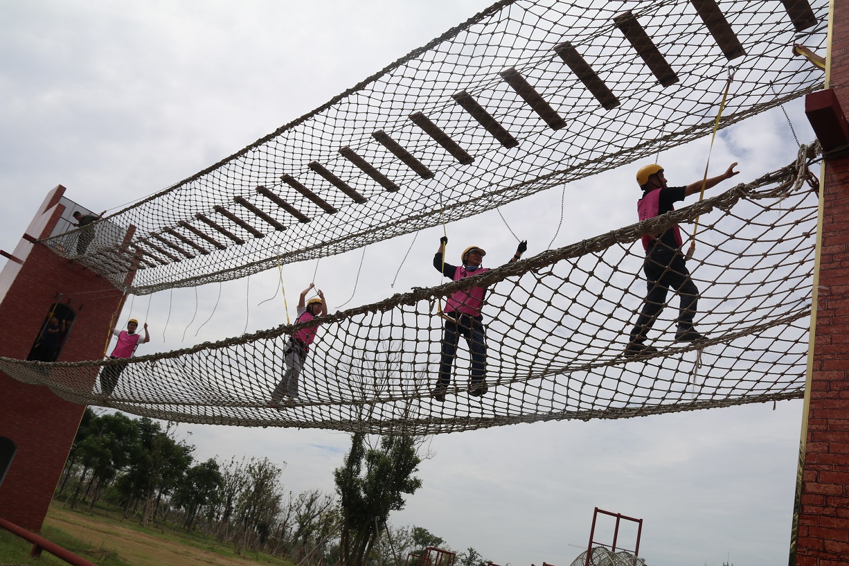 接著,四個小組先后體驗了“強(qiáng)渡大渡河”、“飛奪瀘定橋”等紅色實景教育項目,使廣大職工體會到當(dāng)年紅軍長征的艱苦環(huán)境,感受了重走長征路的氛圍,增進(jìn)了職工之間的團(tuán)隊友誼、鍛煉了隊員勇于挑戰(zhàn)的堅強(qiáng)意志。